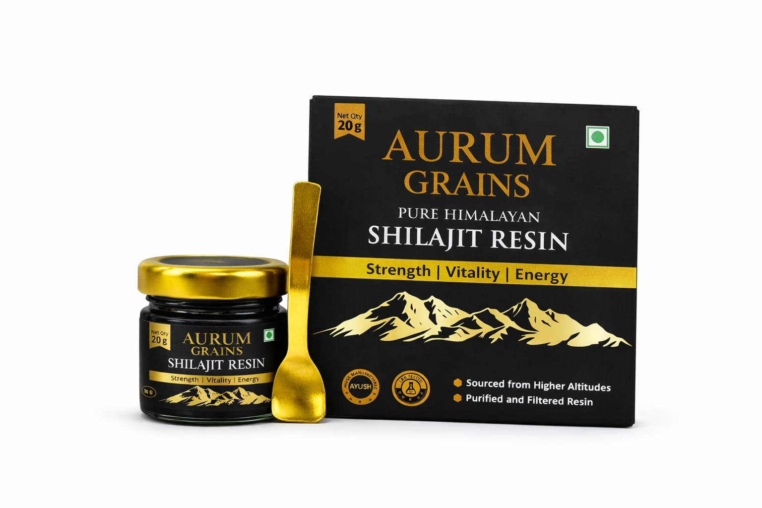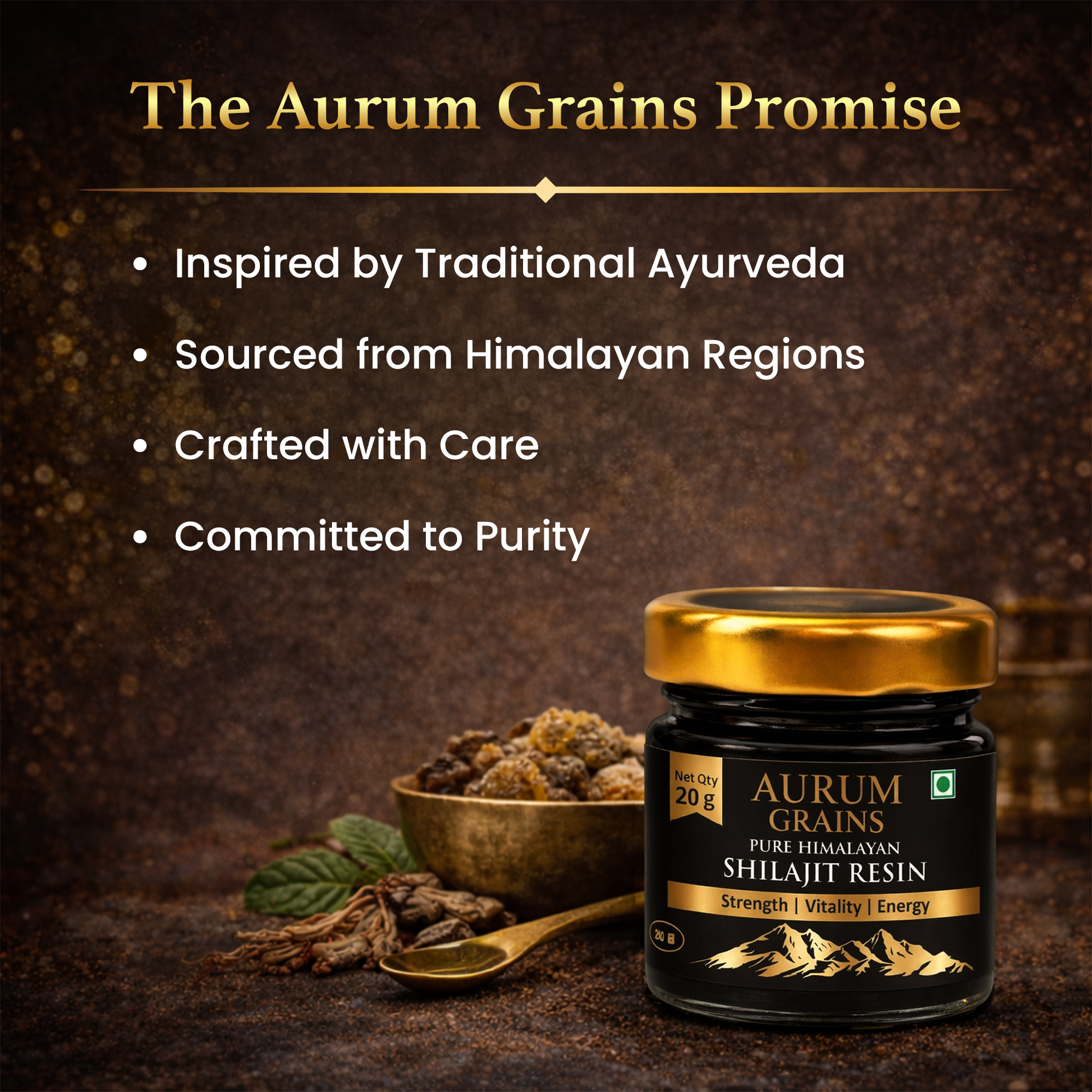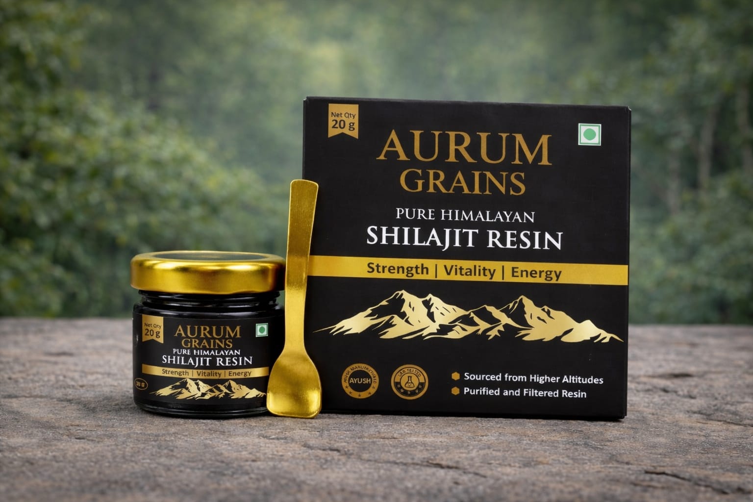 Aurum Grains Shilajit Resin is a classical Ayurvedic formulation, carefully purified using the traditional Triphala Shodhana method as described in ancient Ayurvedic texts.