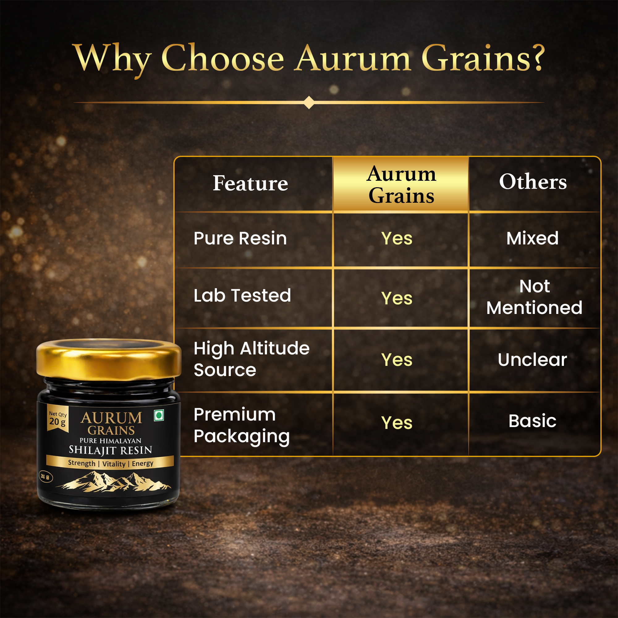 With its rich profile of fulvic minerals, trace elements, and natural bioactive compounds, Aurum Grains Shilajit is crafted to help you feel more energized, focused, and balanced β naturally.