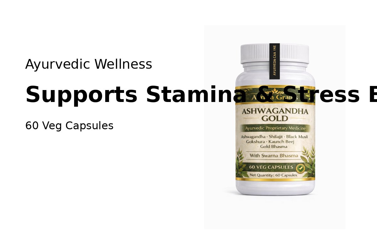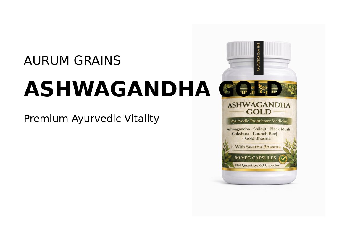 Experience the power of traditional Ayurveda with Aurum Grains Ashwagandha Gold, a carefully crafted herbal formulation designed to support energy, stamina, and overall wellness.